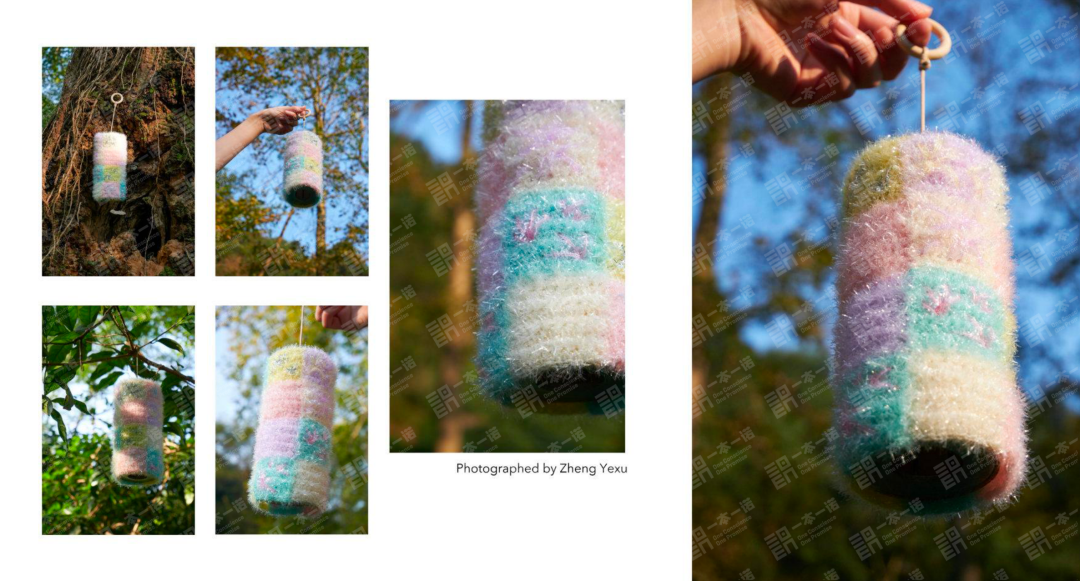 成品是和织物结合,有互动性的疗愈乐器,我带着它们去公园拍了照片,一定程度上达到了自己想做的效果。