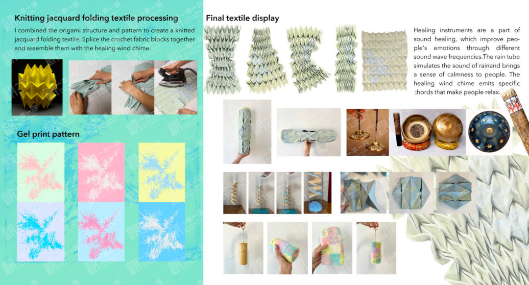 这个项目是围绕“梦核”和“疗愈”展开,发展到一些超现实主义、折纸结构、疗愈方式,最后成品是织物与疗愈乐器的结合。